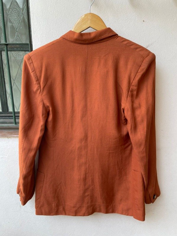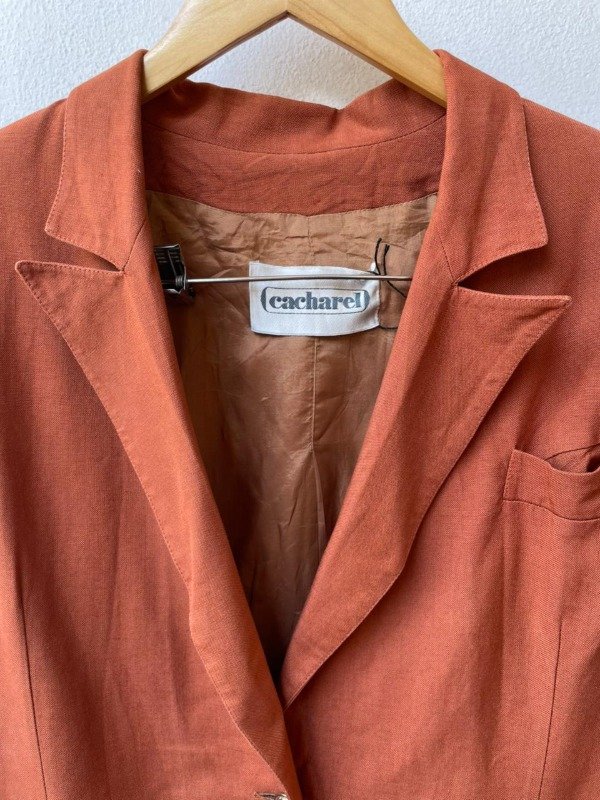 Blazer de lino (78% viscosa - 22% lino) marca Cacharel. Corte clásico, con hombreras y tres bolsillos.