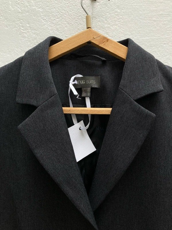 Saco de traje femenino, en tela sastrera, larguito. Marca Mango.