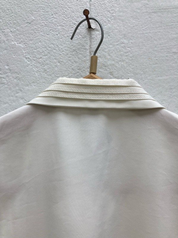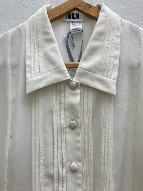 Camisa en sedita, con alforzas en frente y cuello. Mangas 3/4 y puños con elástico.